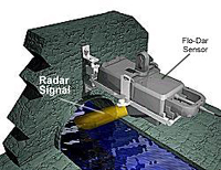 sensing, Flo-Dar remotely monitors open channel flows. The Flo-Dar sensor is installed above the flow stream eliminating